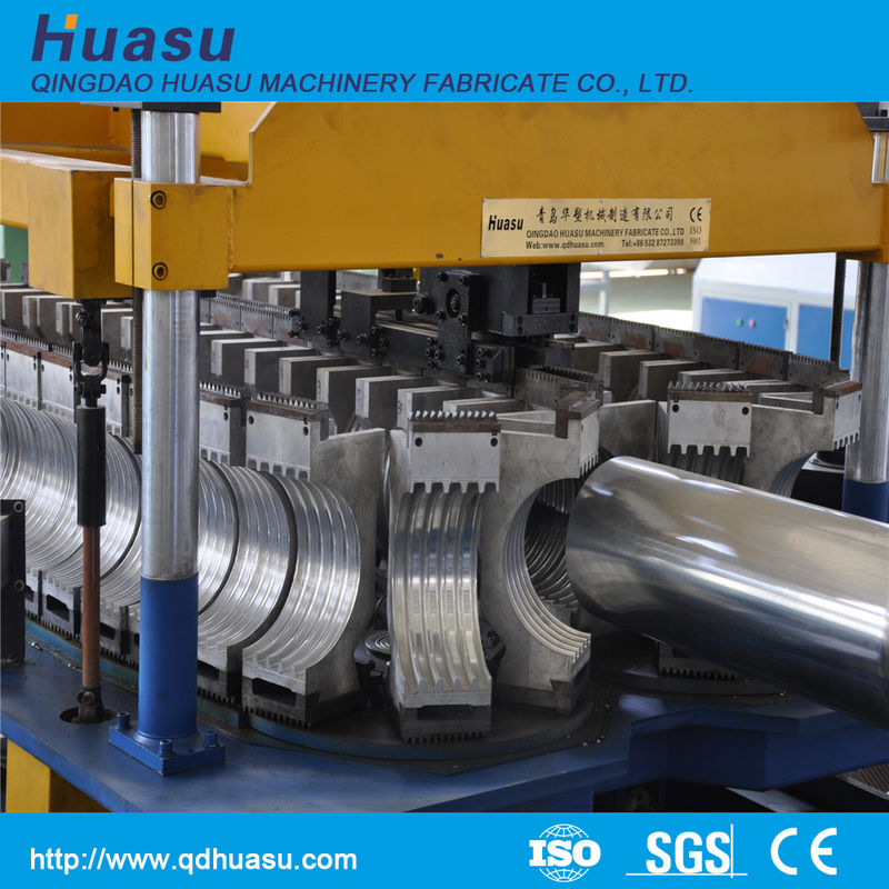 Corrugador: El corrugador es estructura horizontal adoptada con el tipo de cadena transmisión, equipada del sistema abierto de la refrigeración por agua. Aumenta grandemente la velocidad de la producción. La mudanza de los bloques del molde adopta la parte superior síncrona avanzada y baja el sistema de accionamiento motriz. Asegura exactitud móvil y estabilidad plástica de la calidad del tubo. El sistema autolubricador avanzado hace que los moldes y las abrasiones de formación de las placas del molde minimizan y amplían grandemente la vida de servicio.
