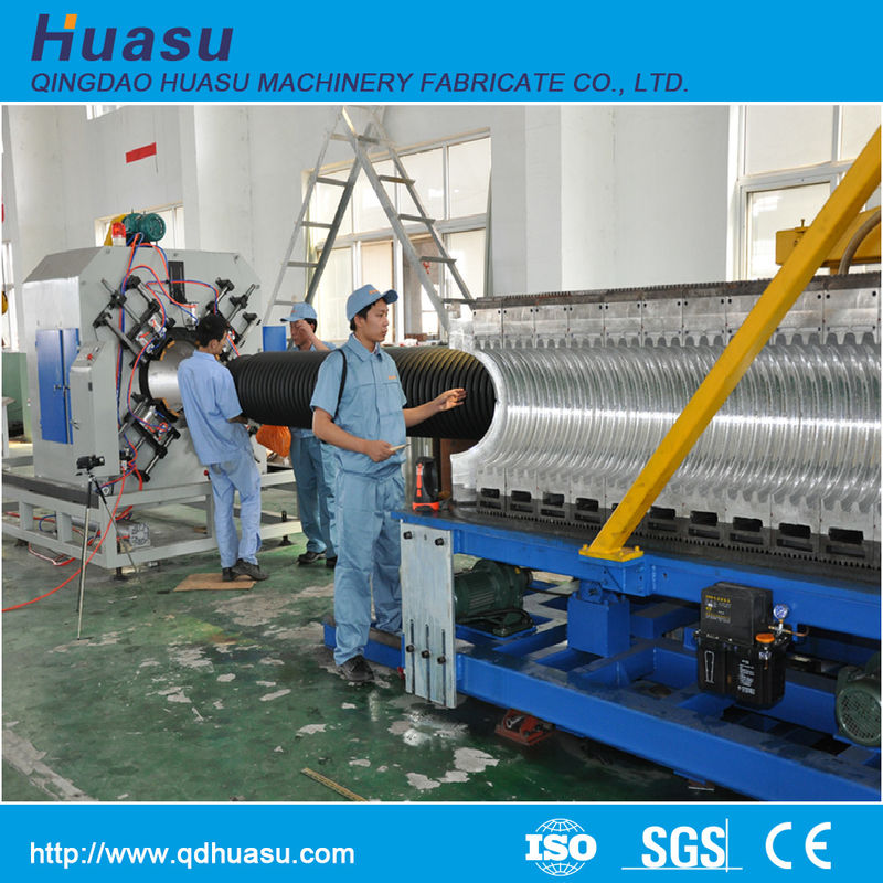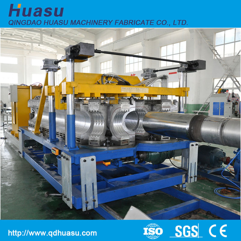 Corrugador: El corrugador es estructura horizontal adoptada con el tipo de cadena transmisión, equipada del sistema abierto y del vacío de la refrigeración por agua que forman el sistema. Aumenta grandemente la velocidad de la producción. El belling en la línea función disminuye coste de inversión y mejora eficacia de la producción. La mudanza del bloque del molde adopta superior síncrono y baja el sistema de accionamiento motriz y el sistema avanzado de la autolubricación. Asegura estabilidad móvil de la calidad de la exactitud y del tubo.