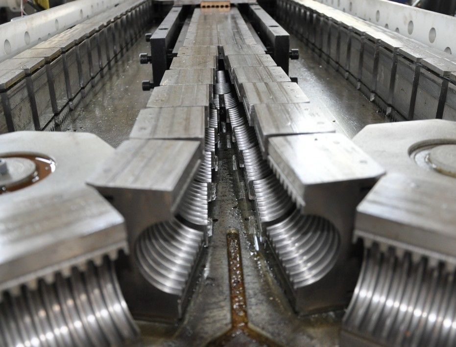 Esta máquina de la protuberancia del tubo del HDPE se puede equipar del extrusor de solo tornillo o del extrusor de tornillo gemelo paralelo. El recorrido de la máquina tiene de tres vías, de cuatro terminales, tipo de la seis-manera. La cortadora tiene cuchilla vio el corte y el método que corta planetario. Huade también suministra toda clase de moldes.