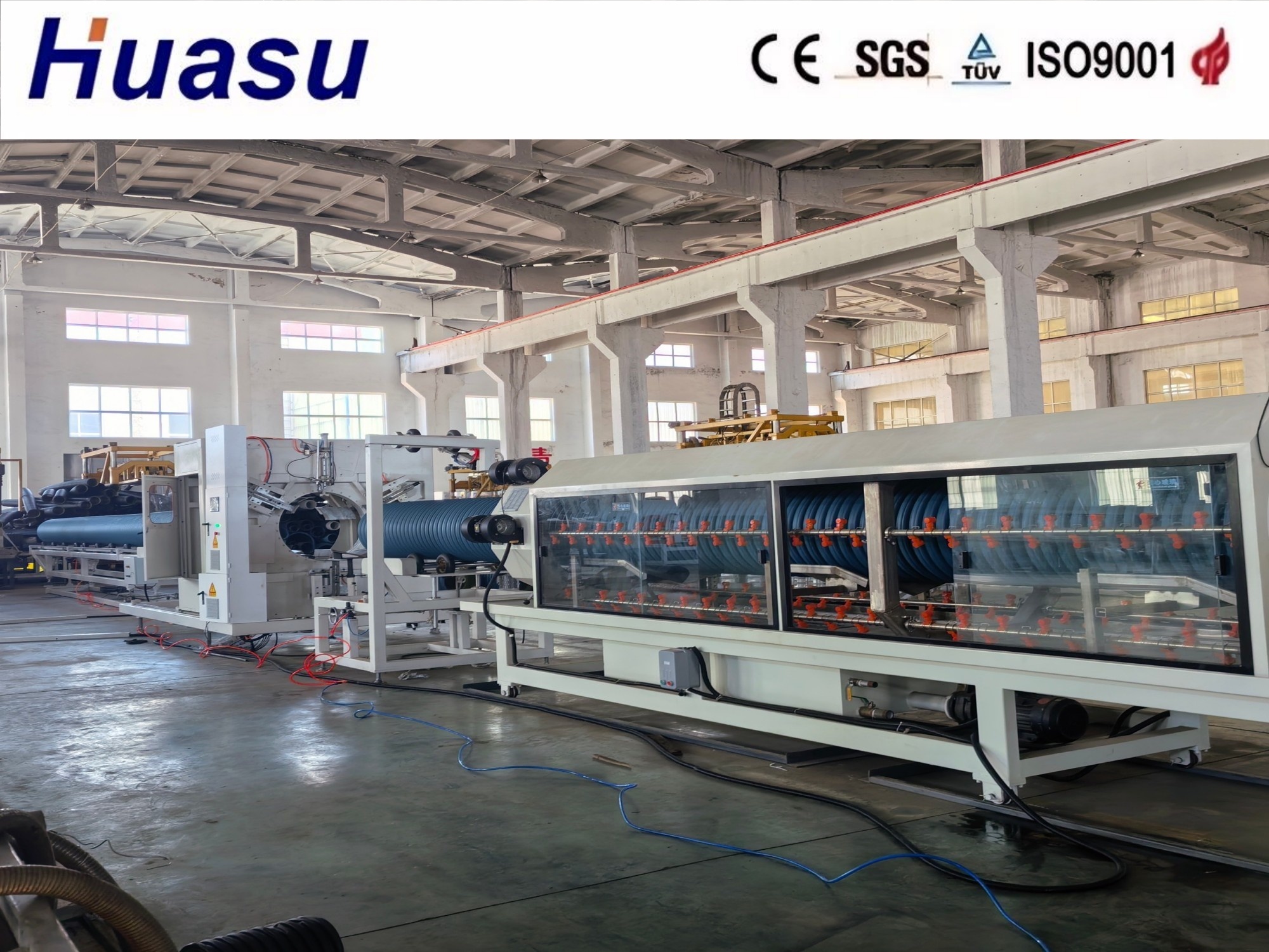 La línea de tuberías onduladas de doble pared representa la tercera generación del producto mejorado creado por Shandong HUASU.con la salida de la extrusora y la velocidad de producción de la tubería mejorada en un 20-40% en comparación con el modelo anteriorEstos avances han hecho que la campanada en línea sea más fluida, asegurando la calidad y el rendimiento de los productos de tubería corrugada.